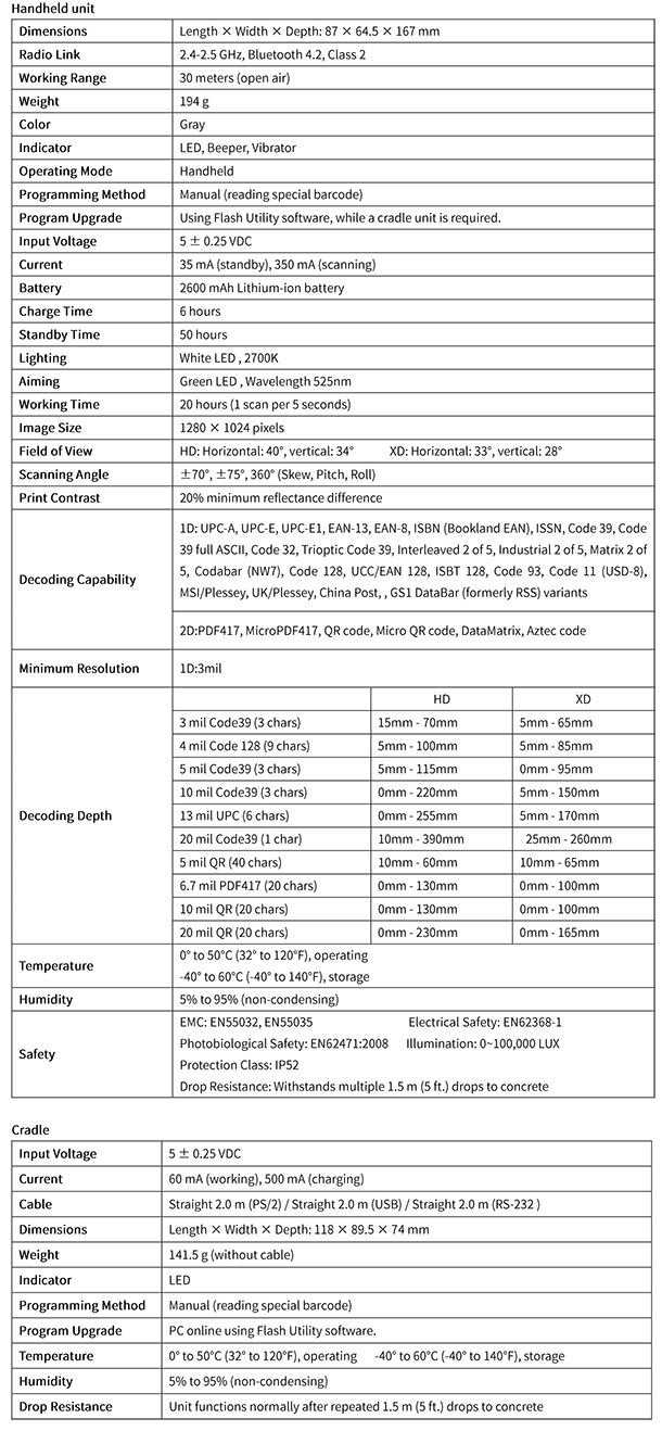 - 支援離線存儲功能(可存儲5000個EAN-13條碼)