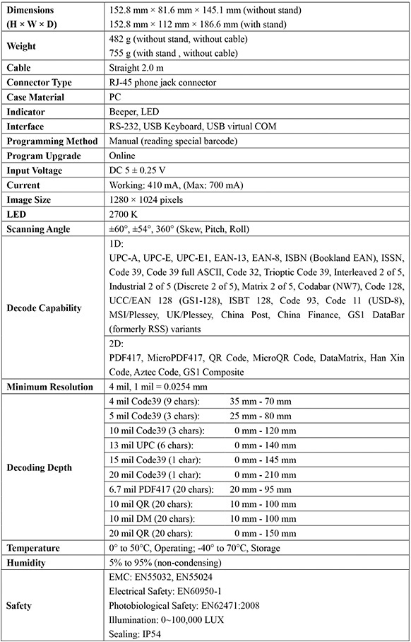 - High-performance imaging technology provides support to read 1D and 2D barcodes from both paper labels and mobile devices.