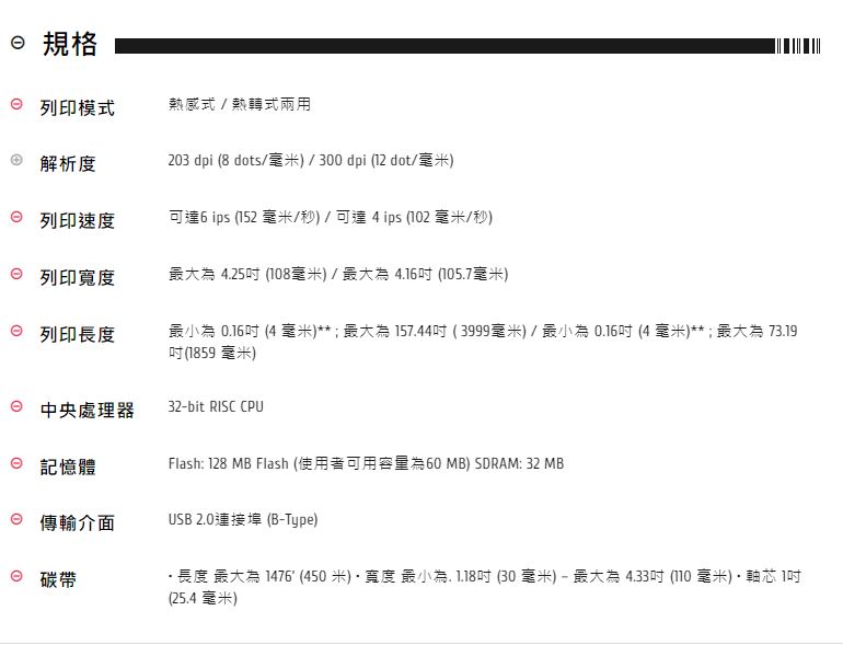 列印多樣的標籤耗材 - 紙張、布標、卡紙等,支援多種不同耗材的列印。